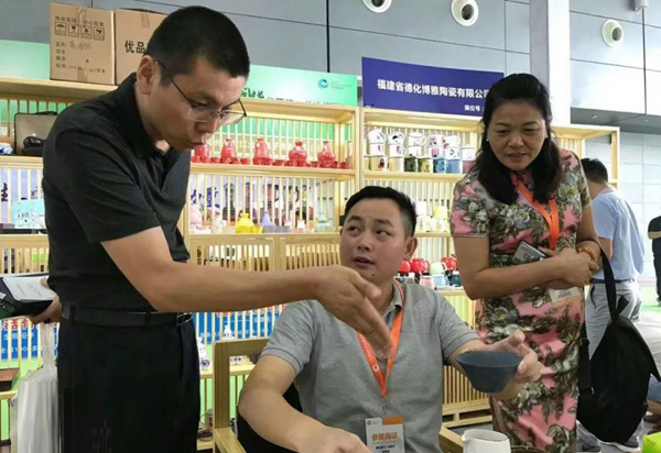 此次,德化縣電商協(xié)會(huì)組織我縣10幾家電商企業(yè)抱團(tuán)參展。協(xié)會(huì)組團(tuán)的德化茶具特裝館位于W2展區(qū),展品有中國(guó)白電陶爐、私人定制茶葉罐、個(gè)性化自動(dòng)茶具、五福印章杯、茶具套裝、倒流香器、擺件等,琳瑯滿目,引發(fā)采購(gòu)商駐足挑選。展覽期間,“德化茶具館”還為到館客人精心準(zhǔn)備了精美的陶瓷禮品,現(xiàn)場(chǎng)還有現(xiàn)金紅包等各具特色活動(dòng)。