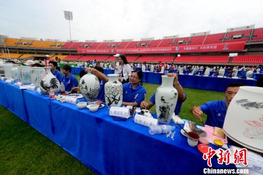 9月23日,1131名陶藝家在景德鎮(zhèn)同時(shí)創(chuàng)作,創(chuàng)下“千名陶藝家手繪花瓶”吉尼斯世界紀(jì)錄。