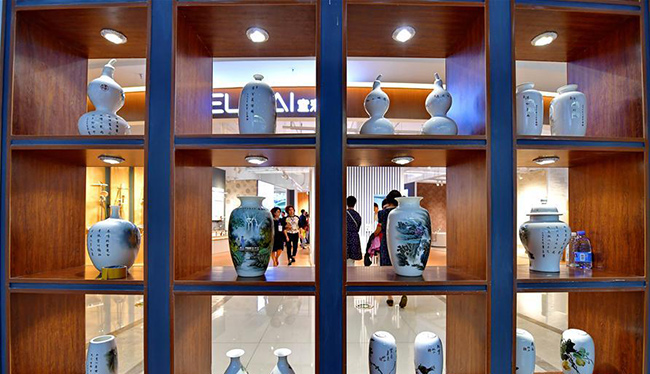 9月16日,觀眾在第二十一屆唐山中國(guó)陶瓷博覽會(huì)上參觀。