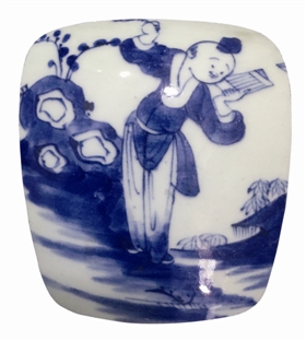 “聽荷抱琴雅意呈,攜子撫花潤無聲,一勾一劃詩韻在,梅蕊靜若暗香人。”這樣四塊為一組的清光緒時期青花瓷片(見圖),依次呈現(xiàn)在讀者眼前,青中閃白,白中顯青的釉色,生動可愛的各姿人物,讓人詩情頓生,愛不釋手。它發(fā)色青翠明麗,思逸典雅,如同四幅中國傳統(tǒng)水墨畫,充滿了古人的智慧與雅趣。