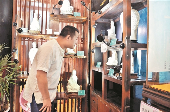 參觀者對(duì)德化陶瓷的精美贊不絕口