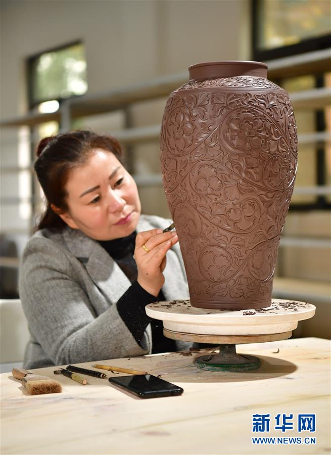 10月21日,在耀瓷小鎮(zhèn)創(chuàng)意園區(qū)大師坊內,一名工作人員在進行創(chuàng)作。10月21日,在耀瓷小鎮(zhèn)創(chuàng)意園區(qū)大師坊內,一名工作人員在進行創(chuàng)作。