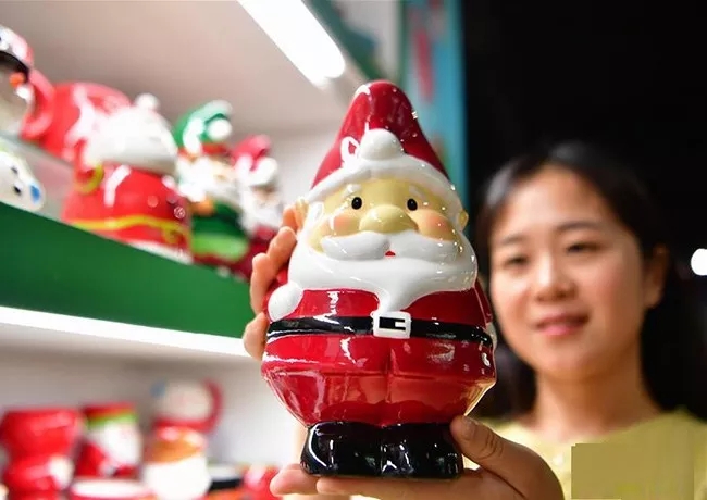 德化順美陶瓷有限公司里展示的各式各樣圣誕節(jié)出口工藝陶瓷品