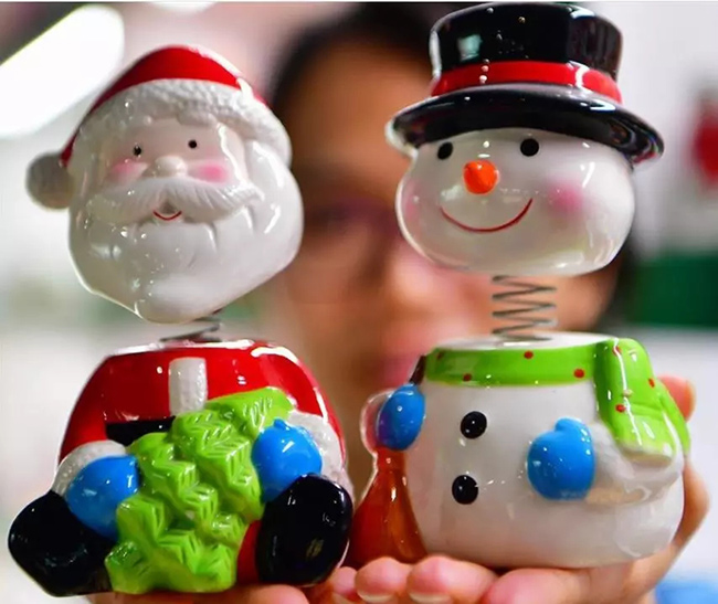 10月23日,德化順美陶瓷有限公司的創(chuàng)作人員展示將出口到80多個國家和地區(qū)的圣誕節(jié)瓷器。