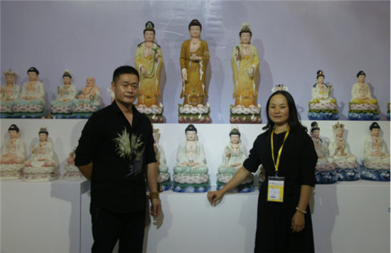 金秋相聚廈門(mén)·共襄佛禪盛會(huì)。10月18日至22日,第13屆中國(guó)廈門(mén)國(guó)際佛事用品秋季展覽會(huì),在廈門(mén)國(guó)際會(huì)展中心隆重舉行,展出面積11萬(wàn)平方米,設(shè)置國(guó)際標(biāo)準(zhǔn)展位6000個(gè),匯聚國(guó)內(nèi)外千家佛教用品行業(yè)的品牌企業(yè),涵蓋佛教用品產(chǎn)業(yè)各類(lèi)產(chǎn)品,吸引海內(nèi)外觀眾超過(guò)20萬(wàn)人次,規(guī)模宏大,盛況空前,同時(shí)進(jìn)行一系列豐富多彩的文化演藝活動(dòng)。B4T042展館,德化縣靜心堂瓷塑藝術(shù)研究所展出了自主研發(fā)的立式或坐式的淡彩系列與極彩系列的瓷塑佛像藝術(shù)作品,吸引了廣大客商的高度重視與濃烈興致。
