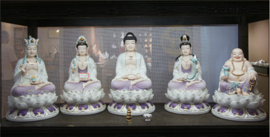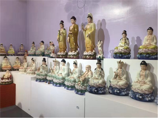 眾所周知,福建德化是聞名遐邇的世界瓷都,是世界最大的白瓷觀音生產(chǎn)基地。自“瓷圣”明朝何朝宗以來(lái),世代傳承、名家輩出、爭(zhēng)奇斗艷、流光溢彩。郭桂星與愛(ài)人林寶珍也不甘示弱一起創(chuàng)造了一系列珍貴的佛禪瓷塑原創(chuàng)作品。