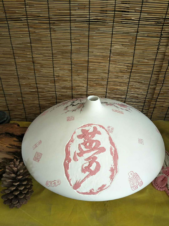 從大學畢業(yè)至今,醉心于具有不屈不饒,傲雪欺霜的國畫梅花。傾心研究出釉下彩“凹凸”畫法,經(jīng)過上千次實驗,克服了胎體色料、釉水不相容,色料容易起泡、脫落的種種困難,終于研究出晶瑩剔透,光亮照人的釉下彩梅花,使釉下彩梅花極具凸出感(凸出厚度達兩毫米)。打破了釉下彩“寧平不凸,寧薄不厚”的傳統(tǒng)畫法,填補了釉下彩技法空白。