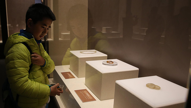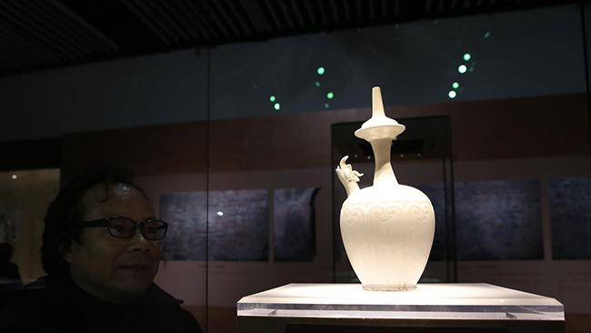 中國(guó)園林博物館,市民參觀定窯瓷器。