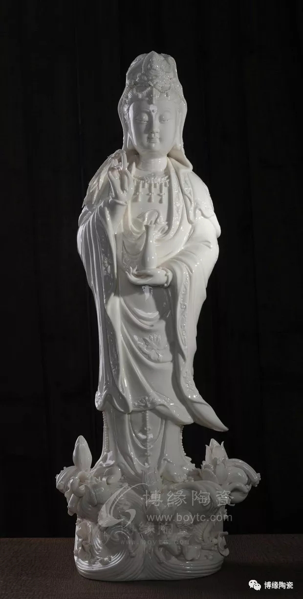 琉璃觀音:形象為雙手捧一琉璃壺,乘蓮瓣浮于海上。寓意琉璃心境,心想事成。