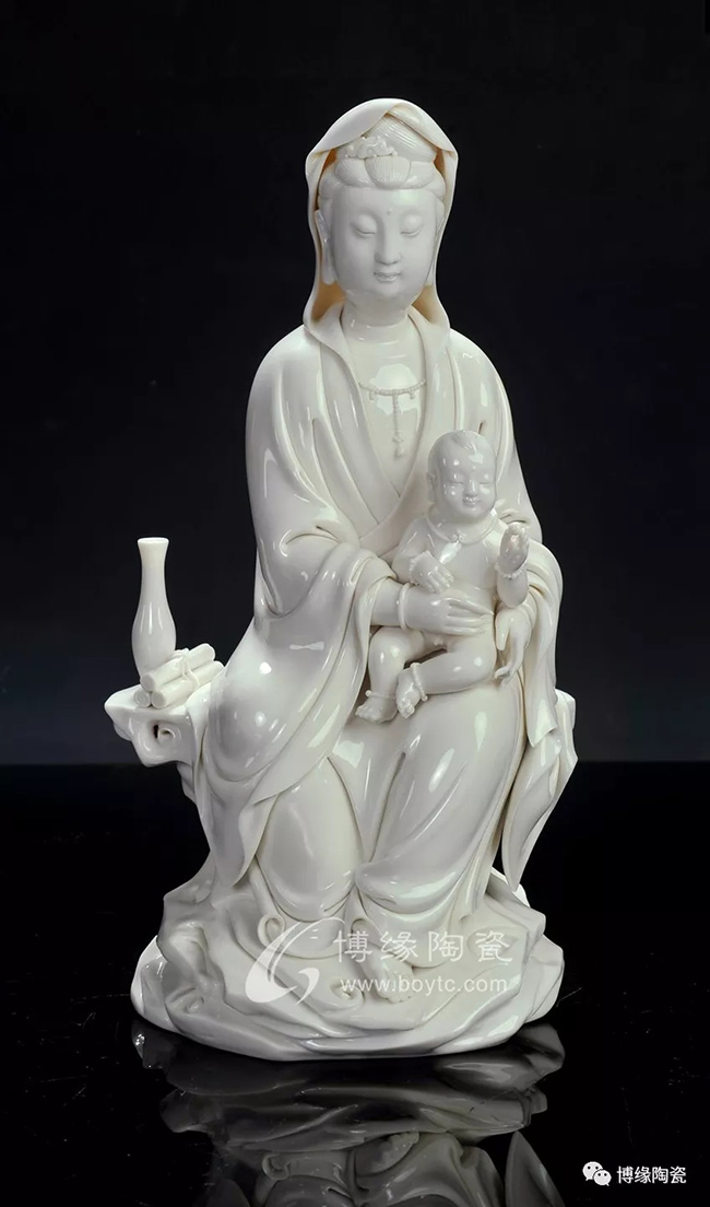 持經(jīng)觀音:又名讀經(jīng)觀音。箕坐巖上,右手持經(jīng)卷,狀若讀書。持經(jīng)觀音典出唐末錢戮起兵立國護民的典故。其寓意為心懷天下,心想事成。