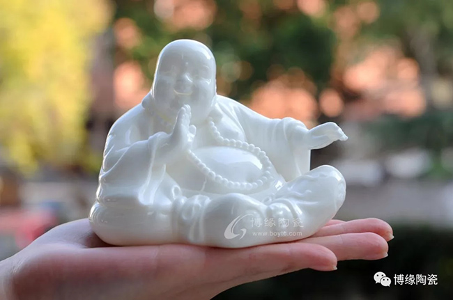 過年禮品推薦九:格調(diào)高雅、肅穆大方、有“東方藝術(shù)”精品之美譽,白瓷彌勒佛像。