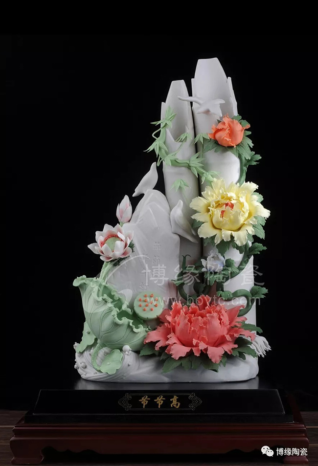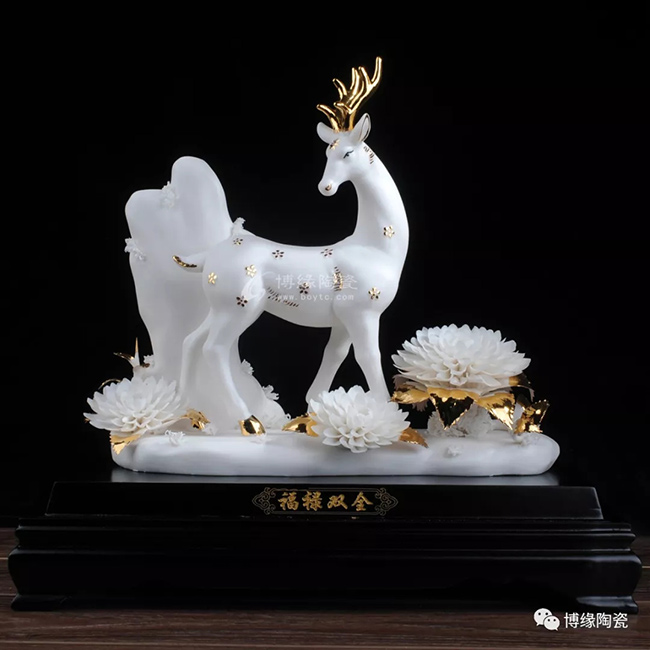 瓷花作品以德化特有的溫潤如玉,素凈淡雅的”中國白“為胎質(zhì),通過精細(xì)的瓷花工藝,雕刻栩栩如生,賜予瓷花、小鹿、小鳥生命,塑造出了“春暖花開”、”百花爭艷、鳥語花香”的繁榮景象。