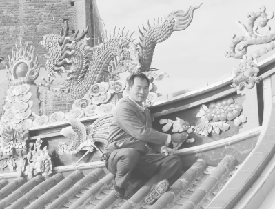 40年來,孫麗強(qiáng)獨(dú)自和參與修繕的廟寺、祖祠有160多座。東山島上的省級文物保護(hù)單位宮前村天后宮、東明寺、石廟山寺、南正院等許多古寺廟和老祖祠的厝頂,都留下他的杰作。此外,永定下洋鎮(zhèn)思賢村的路門牌坊、平和縣的三平寺、云霄縣天地會主要活動(dòng)地高溪廟、福州三坊七巷的二梅書屋、廣東省潮汕地區(qū)和惠東等地的古寺廟建筑都有孫麗強(qiáng)的得意之作。那些凌空飛舞的雙鳳朝陽,騰空盤旋的二龍搶珠,惟妙惟肖的戲劇人物,生趣盎然的珍禽異獸,賞心悅目,令人贊嘆。