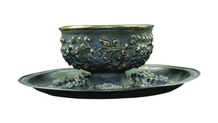 溧陽(yáng)市博物館所藏這套通體牡丹纏繞、頗具富貴雍容之氣的銀托盞,在當(dāng)時(shí)也可算是一件高檔次的酒具了。