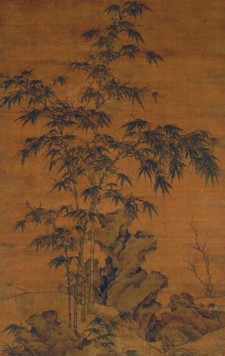 前文故事中另一人——李衎,著有七卷本《竹譜詳錄》,對不同地區(qū)各類竹的形色情狀記述詳細,對各類竹的各種畫法也有詳盡論述,是他生平畫竹經(jīng)驗的總結(jié),也是學(xué)習(xí)畫竹者的津梁。這本百科全書式的著作連同他那些造詣精深的畫竹之作,使他當(dāng)之無愧地成為畫竹的“教主”。不過有意思的是,墨竹成就如此之高的李衎,最后也有追求雙鉤設(shè)色之舉。書法家鮮于樞(1246—1302)建議李衎以色代墨寫竹,李衎接受其建議,既而追求李頗、黃筌父子的雙鉤設(shè)色法,有《竹石圖軸》,藏于北京故宮博物院。