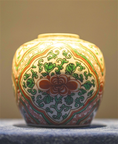 走進展廳,在場館中“故宮紅”的映襯之下,這些經(jīng)歷了世代風(fēng)雨的瓷器依舊不失精美。