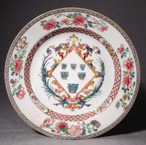 紋章瓷是外銷瓷中的一個特殊種類,始于16世紀(jì),于18世紀(jì)達(dá)到頂峰,因器物表面直接繪有家族徽章圖案而得名,是由中國工匠按照歐美訂購商所提供的品種、造型、紋飾圖案進(jìn)行彩繪燒制而成,屬于“來樣加工”的定制瓷器。與普通的貿(mào)易外銷瓷不同,紋章瓷是為具有特殊身份的皇室成員、政府官員、豪紳貴族、特殊協(xié)會或公司所定制的,制作上最為精美,在當(dāng)時歐美屬于頂級奢侈品,堪稱外銷瓷中的“官窯”。