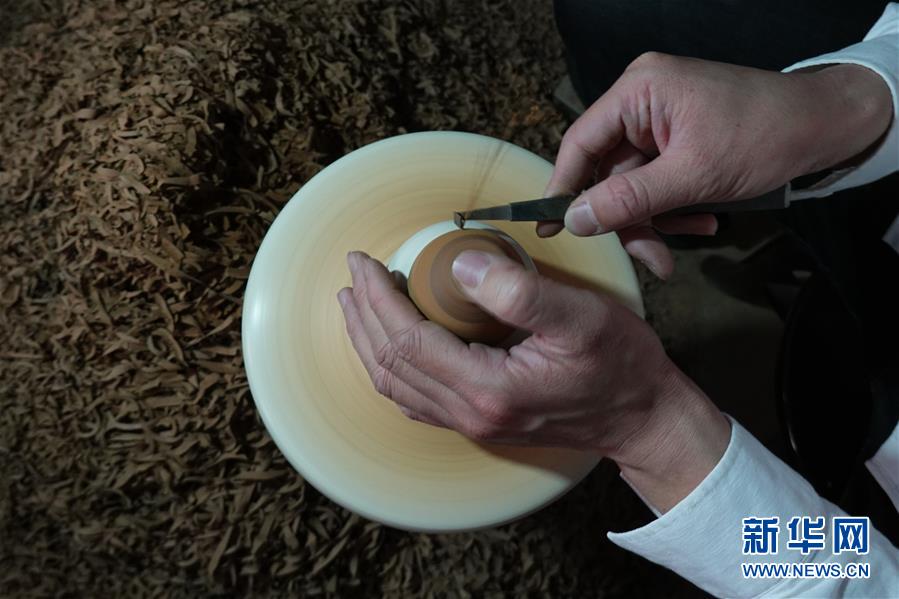 吳立主是建盞界老一輩工藝師。2015年,吳立主偶然間試制出兩款斑紋神似龍鱗和曜變的建盞。自此,他一直執(zhí)著探索,潛心燒制復(fù)原曜變建盞。“在我有生之年,一定要燒出一件讓自己滿意、市場認(rèn)可的曜變建盞。”他說。