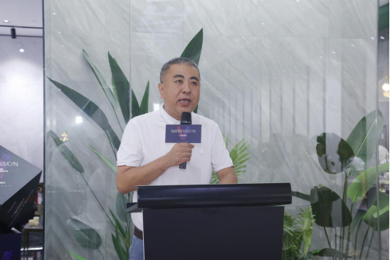 隨后,威爾斯陶瓷品牌銷售副總經(jīng)理黃新峰先生作講話。黃總表示2019年是威爾斯品牌重要改革升級年,威爾斯時刻不忘秉承“國際化、年輕化、時尚化”的高端品牌理念,從全局出發(fā),與時俱進,緊貼國際潮流設計。本次“V-LIFE 印象”通過注入威尼斯水文化設計元素和現(xiàn)代美學設計理念,選用大規(guī)格系列核心技術(shù)產(chǎn)品,營造出輕奢、極簡、國際范的整體風格,體現(xiàn)威爾斯總部展館的“博大”的氣魄與魅力。本次“V-LIFE 印象”由威爾斯一流設計團隊全力打造,歷經(jīng)數(shù)十日,今天正式首次對外開放,它標志著品牌實現(xiàn)發(fā)展的新跨越!