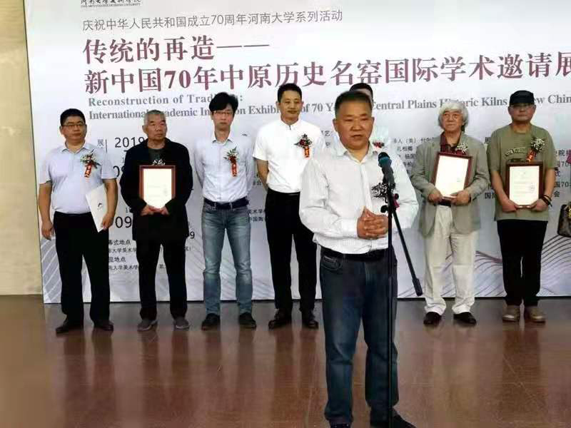 河南大學(xué)黨委常委、副校長(zhǎng)劉先省說,以河南為中心的中原地區(qū)是中國(guó)陶瓷重要發(fā)源地,中原陶瓷的根脈性、原生性、發(fā)源性、輻射性、創(chuàng)新性是我們河大學(xué)人首倡的“中原陶瓷學(xué)”理論體系建設(shè)堅(jiān)實(shí)的歷史基礎(chǔ)。站在文明史、學(xué)術(shù)史高度觀照陶瓷創(chuàng)作實(shí)踐及其理論建樹,獨(dú)辟中國(guó)陶瓷史研究之理論先河是歷史賦予河南大學(xué)學(xué)人的使命,是時(shí)代賦予河南大學(xué)學(xué)人的責(zé)任。在新中國(guó)成立70周年即將來臨之際,作為2019河南大學(xué)國(guó)際藝術(shù)家駐場(chǎng)系列活動(dòng)的收官之作,“傳統(tǒng)的再造——新中國(guó)70年中原歷史名窯國(guó)際學(xué)術(shù)邀請(qǐng)展”所凝結(jié)的學(xué)術(shù)和藝術(shù)成果,對(duì)于中原歷史名窯現(xiàn)代轉(zhuǎn)型以及中國(guó)陶瓷藝術(shù)的未來發(fā)展走向會(huì)有特別的標(biāo)桿性意義。期待河南大學(xué)中國(guó)陶瓷研究院成立后,河南大學(xué)學(xué)人能夠攜手中原歷史名窯原產(chǎn)地和海內(nèi)外藝術(shù)家,為中國(guó)陶瓷的繁榮發(fā)展貢獻(xiàn)一份“中原力量”!