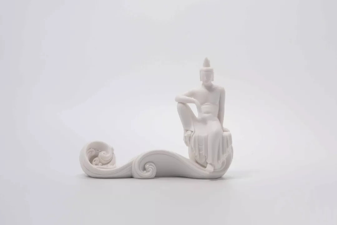 白瓷變成文房陳設(shè)是必然的,其中的因素是基于什么?第一,基于中國人對玉的喜愛。我們一到德化時,當時張校長就跟我們講,德化白瓷跟其他瓷不同的特點,薄如紙、聲如罄、白如玉,它的溫潤確實跟山東淄博的骨瓷白不一樣,它那種白是半透的白,它指向了中國文人的君子情懷。所以對白瓷的喜愛,就像當年孔子把自己的品格比喻成玉,而不是琉璃,就是他在那種透和不透之間,白又不是那么白,有點溫潤的感覺,有點體現(xiàn)了文人內(nèi)心的節(jié)操。