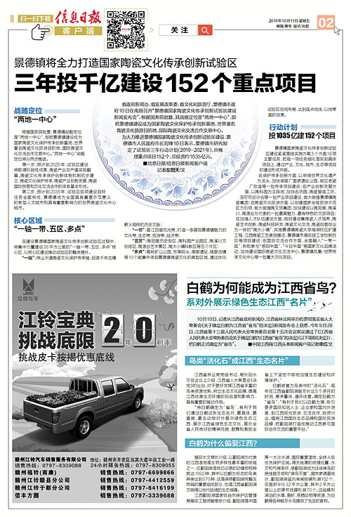 省政府新聞辦、省發(fā)展改革委、省文化和旅游廳、景德鎮(zhèn)市政府10日在南昌召開“景德鎮(zhèn)國家陶瓷文化傳承創(chuàng)新試驗區(qū)建設(shè)新聞發(fā)布會”,根據(jù)國務(wù)院批復(fù),其戰(zhàn)略定位是“兩地一中心”,即把景德鎮(zhèn)建設(shè)成為國家陶瓷文化保護傳承創(chuàng)新基地、世界著名陶瓷文化旅游目的地、國際陶瓷文化交流合作交易中心。