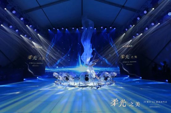 區(qū)別于以往傳統(tǒng)的發(fā)布會(huì),本次華鵬陶瓷新品發(fā)布會(huì)采用全感官沉浸式光影設(shè)計(jì)。現(xiàn)場(chǎng)搭建成高8米,占地500平米的劇場(chǎng)。從劇場(chǎng)式光影長(zhǎng)廊步入,開(kāi)啟一段光的旅行。內(nèi)場(chǎng)L型互動(dòng)屏幕,營(yíng)造全沉浸式體驗(yàn),光影穿梭,置身其中,仿佛穿越到另一個(gè)世界。舞蹈視頻互動(dòng)秀,以情景舞蹈的形式,通過(guò)【聚變】、【尋覓】、【締造】、【突破】四幕,演繹陶瓷從無(wú)到有,華鵬陶瓷柔光磚5.0由此而生的過(guò)程。