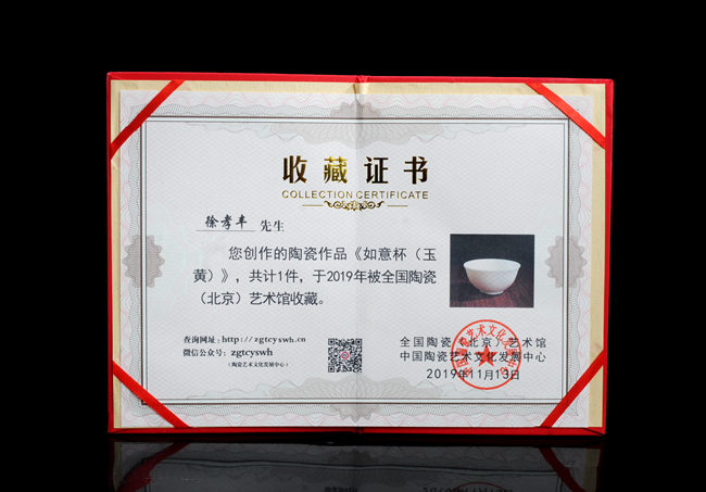 《如意杯(玉黃)》于2019年被全國陶瓷(北京)藝術館收藏