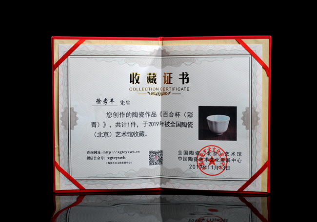 《百合杯(彩青)》于2019年被全國陶瓷(北京)藝術館收藏