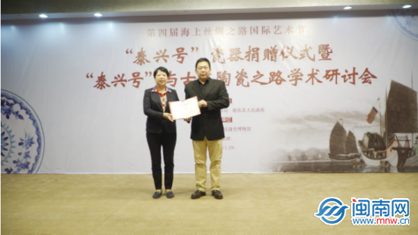 閩南網(wǎng)11月28日訊(福建日報(bào)新媒體·閩南網(wǎng)記者 陳玉玲 通訊員 何奕斌)作為第四屆海上絲綢之路國際藝術(shù)節(jié)全域性活動項(xiàng)目之一,“泰興號”瓷器捐贈儀式暨“泰興號”與古代陶瓷之路學(xué)術(shù)研討會于28日在泉州海外交通史博物館開幕。時(shí)隔近200年后,“泰興號”沉船的50件德化瓷器回歸故里,為中國“海上絲綢之路”及德化瓷外銷史提供珍貴的實(shí)物證據(jù)。
