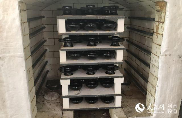 一股熱氣迎面撲來,一爐淡黑色瓷器進(jìn)入眼簾。