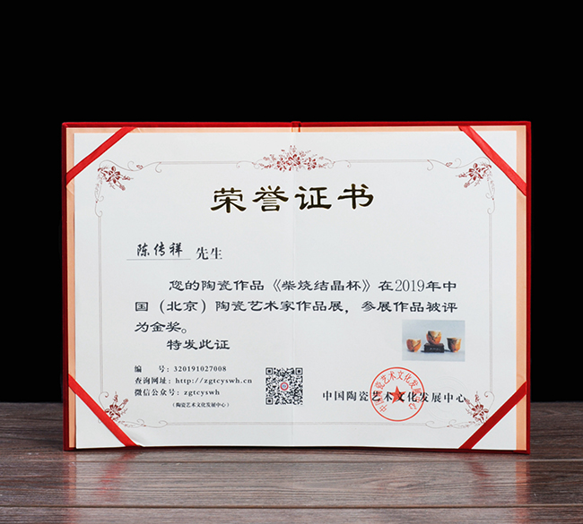 《柴燒結(jié)晶杯》榮獲2019年中國(guó)國(guó)際(北 京)陶瓷藝術(shù)家作品展評(píng)比金獎(jiǎng)