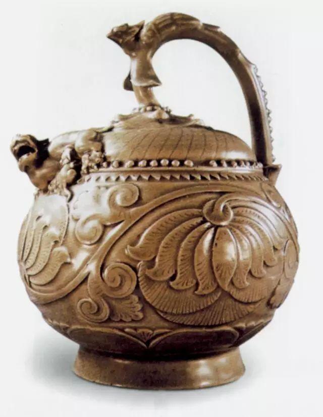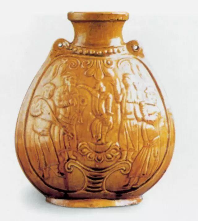 胡騰舞黃釉扁壺 高20.5厘米 北齊經(jīng)過(guò)隋唐長(zhǎng)達(dá)三百余年的統(tǒng)一,使中國(guó)古代文化形成了自己獨(dú)有的特色。此時(shí)的酒文化也得到了長(zhǎng)足的發(fā)展,并形成了以瓷酒器為主、金銀酒器為輔的新的歷史時(shí)期。