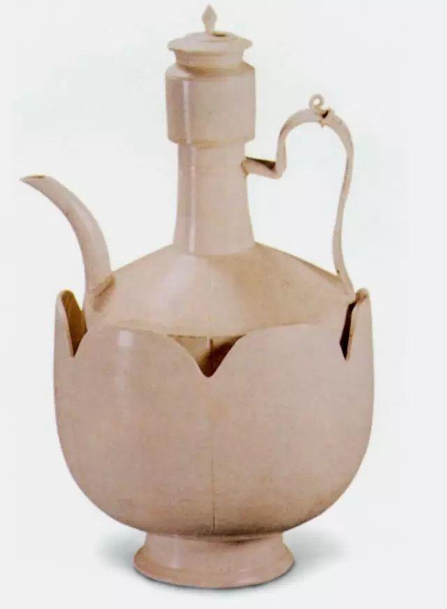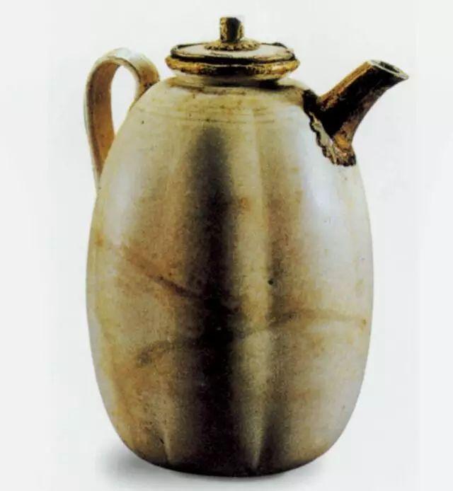 白釉金釦瓜形注子 唐代 通高15.7厘米 口徑4.4厘米 底徑6.3厘米