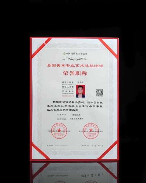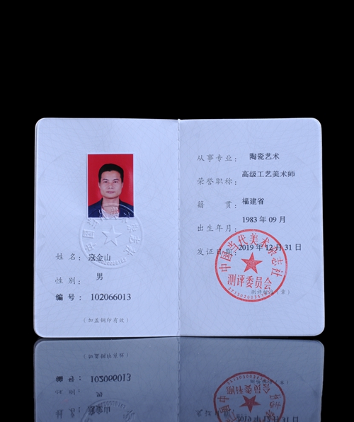 寇金山,中國陶瓷藝術(shù)家、高級工藝美術(shù)師、福建省工藝美術(shù)師、中國陶瓷藝術(shù)文化發(fā)展中心會員,博及漁人陶瓷有限公司總監(jiān),福堂陶瓷研究所藝術(shù)總監(jiān)。1983年9月出生于“中國瓷都德化”,從小深受瓷都德化陶瓷文化熏陶 ,酷愛陶瓷創(chuàng)作,大學畢業(yè)后回瓷都德化從事陶瓷開發(fā)工作,2003年至2004年在德化富東瓷廠從事陶瓷樣品開發(fā)管理工作;2005年至2008年在福州從事大型雕塑制作;2009年成立福建省福寶堂陶瓷研究所?芙鹕介L期深入建陽學習建盞制作燒制,經(jīng)過多年的學習積累,熟練掌握陶瓷設(shè)計、制作、瓷土配方、拉坯、燒制、制釉等技藝,主要作品有建盞茶器、手拉坯、柴燒茶器等。作品多次獲得國內(nèi)各評比大賽金獎,2019年榮獲“中國陶瓷藝術(shù)家”,作品《油滴建盞》榮獲2019年中國國際(北 京)陶瓷藝術(shù)名家精品展作品評比金獎等,其作品深受廣大客商、藏家青睞,廣受好評。