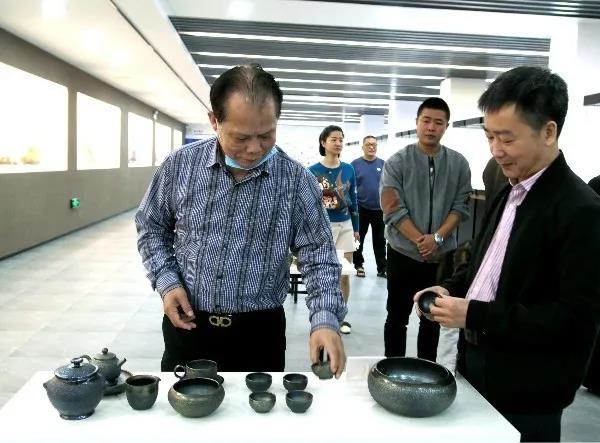 觀展過程中,陳建新會長充分肯定了本次柴燒作品展的舉辦,并細(xì)細(xì)觀看了每一組參展作品,認(rèn)真了解了德化當(dāng)前柴燒陶瓷的發(fā)展情況,同時,還時不時與縣政府副處級干部徐文福、陶藝協(xié)會會長孫義淵、參展創(chuàng)作者劉川等,就柴燒作品工藝、柴燒藝術(shù)發(fā)展的話題展開了交流。