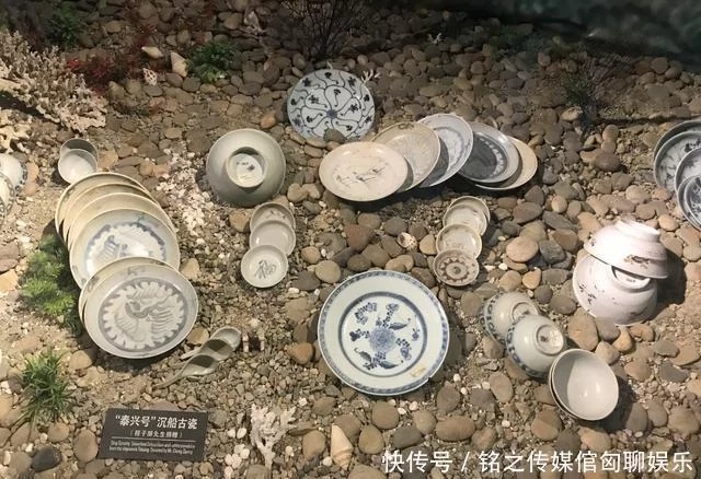 陶瓷博物館一隅,設(shè)有兩處特殊展柜。展柜中,珊瑚海草、殘貝碎石,模擬而成的海底,如意紋青花瓷盤、圈點(diǎn)紋印花小碗等各式瓷器散落其間。這是從中國清代沉船“泰興號”上打撈出的德化古瓷。