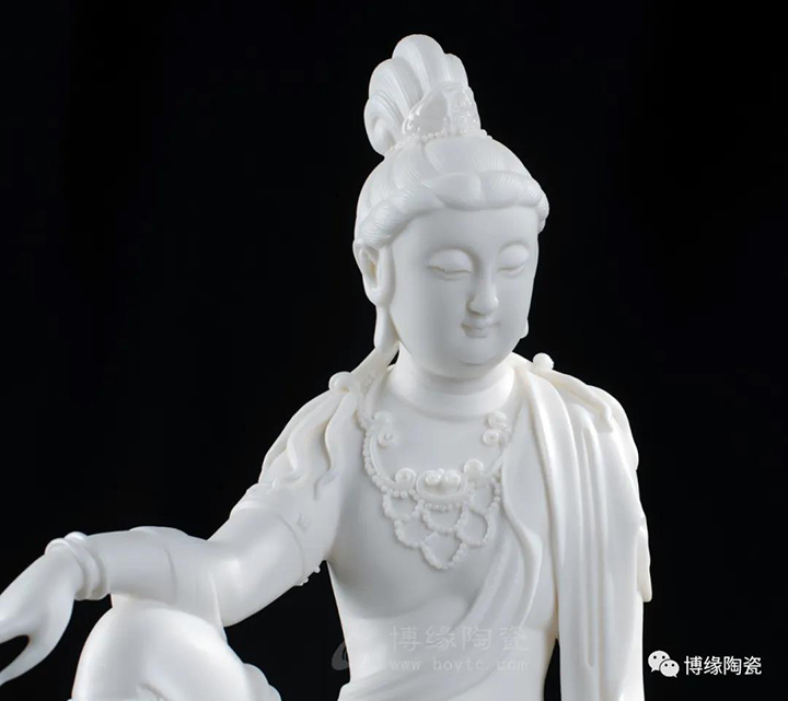 德化瓷器,以白瓷為最;白瓷之中,又以佛像為最。德化白瓷所塑佛像有性格鮮明、造型優(yōu)美、神態(tài)逼真、風(fēng)格洗練的特點(diǎn)。有一種單純的雕塑美和原材料的質(zhì)地美,最能體現(xiàn)佛教樸素、平和的思想。