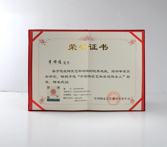 2022年,榮獲中國(guó)陶瓷藝術(shù)非遺傳承人