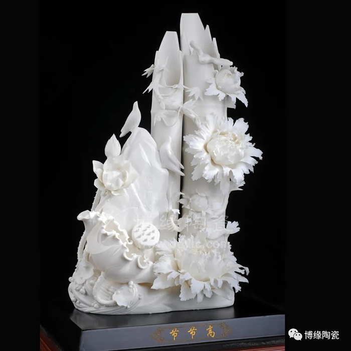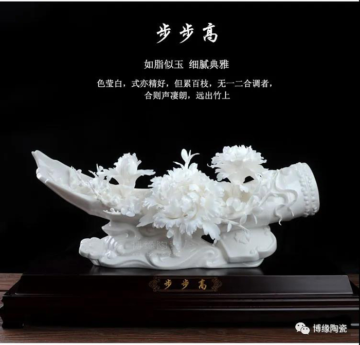 德化做為“中國白“的故鄉(xiāng),其瓷土可塑性好,表現(xiàn)力強(qiáng);德化的陶瓷藝術(shù)家以德化特有的溫潤如玉,素凈淡雅的”中國白“為胎質(zhì),塑造了千嬌百媚的鮮花。