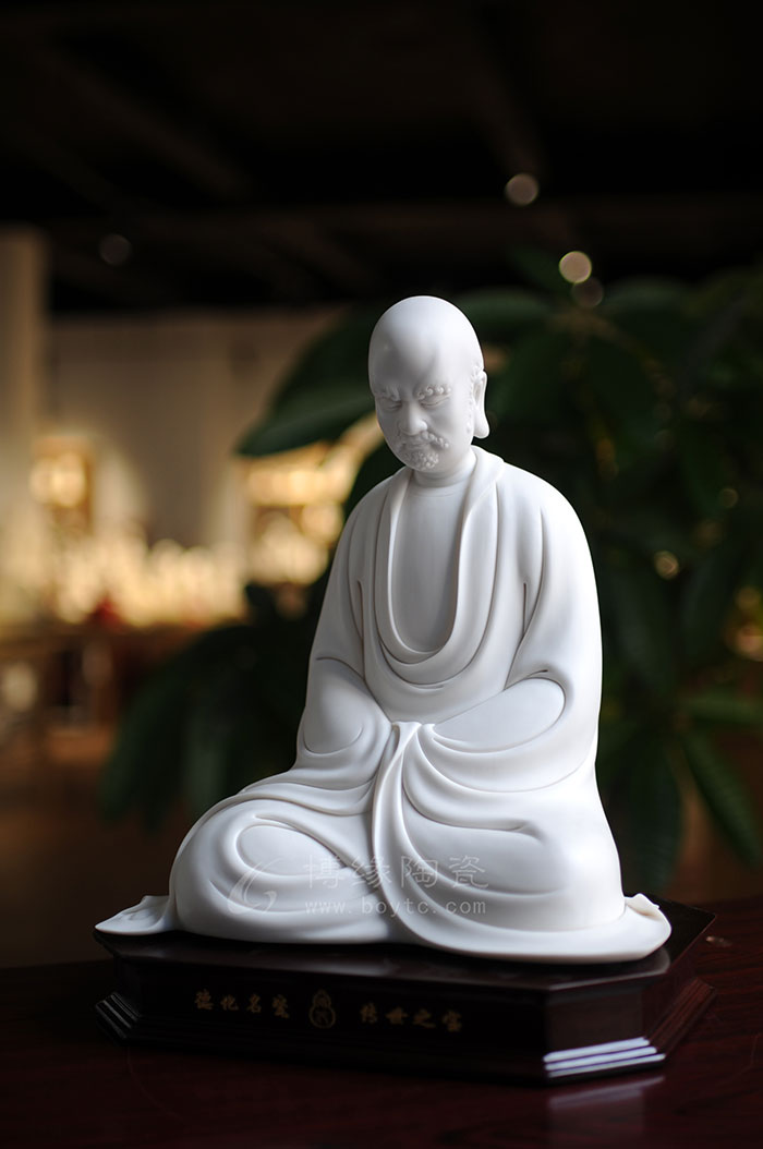 德化瓷器,以白瓷為最;白瓷之中,又以佛像為最。德化白瓷所塑佛像有性格鮮明、造型優(yōu)美、神態(tài)逼真、風(fēng)格洗練的特點。有一種單純的雕塑美和原材料的質(zhì)地美,最能體現(xiàn)佛教樸素、平和的思想。