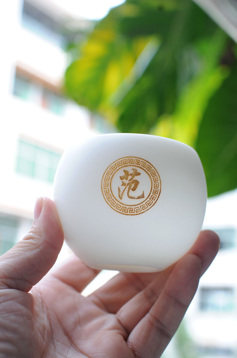 自然光下的養(yǎng)脂玉瓷茶具杯
