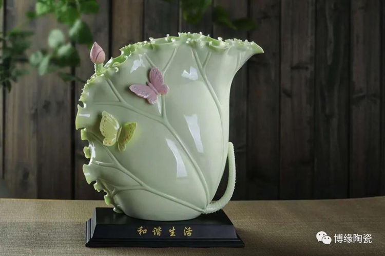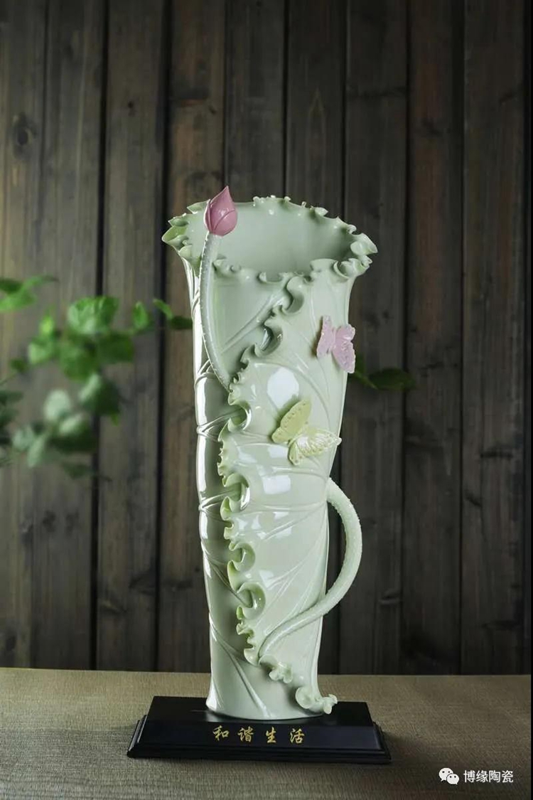 當(dāng)代德化手工花瓶的形式是把內(nèi)涵、色彩,造型與整個(gè)環(huán)境融為一體,表現(xiàn)出鮮明的藝術(shù)風(fēng)格和獨(dú)特個(gè)性,是把真、善、美的情感賦予在環(huán)境裝飾中,既展現(xiàn)美感,又豐富其內(nèi)涵。已成為現(xiàn)代家庭裝飾的顯著特點(diǎn)。