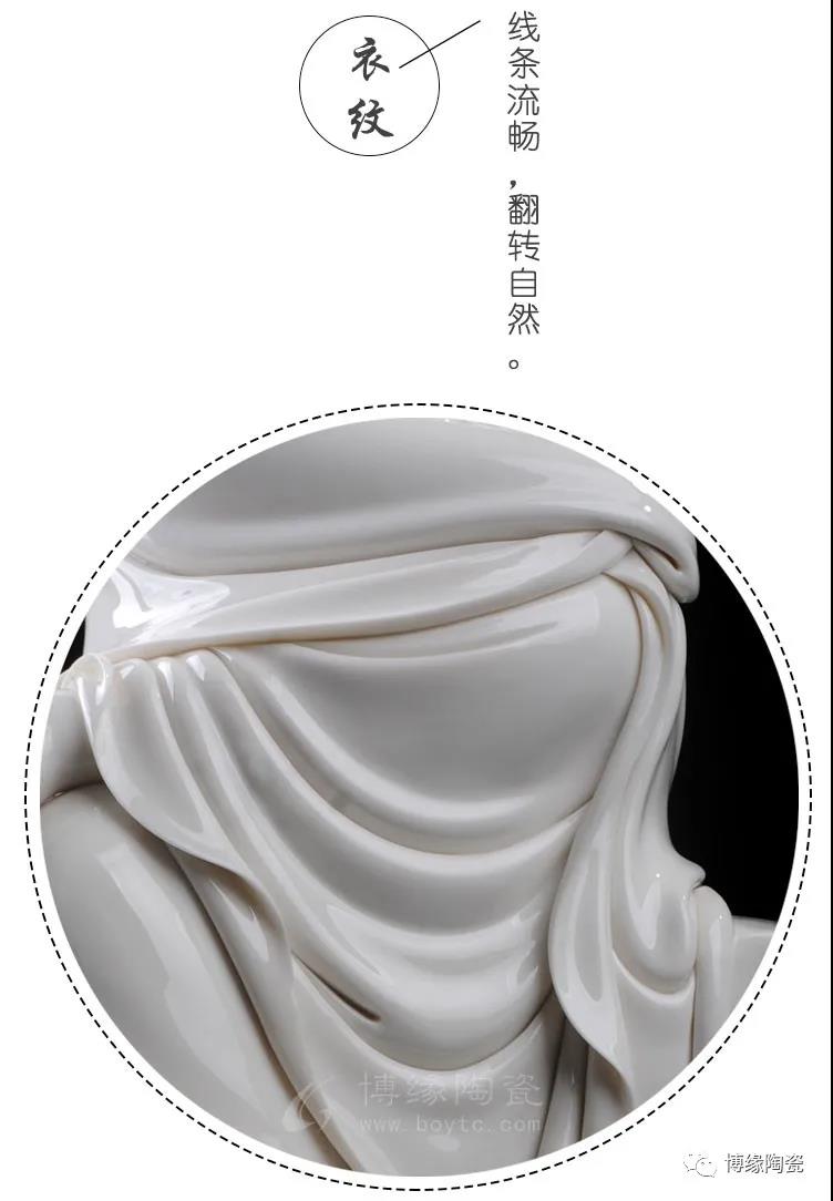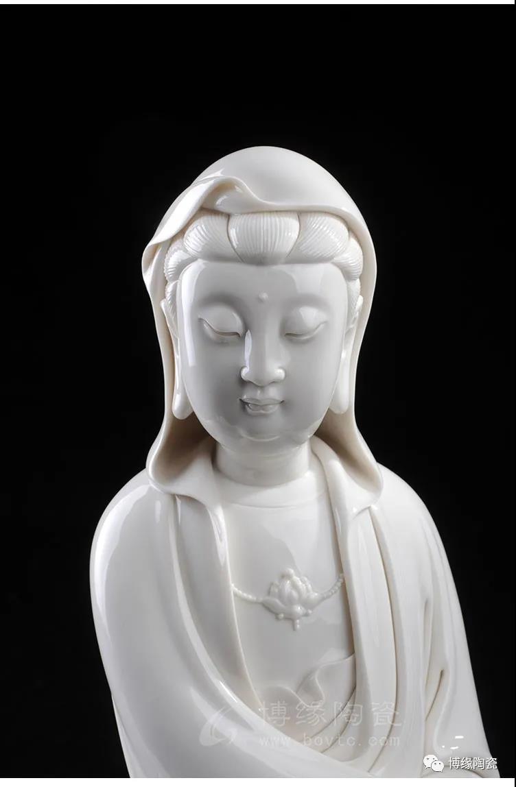 德化瓷器,以白瓷為最;白瓷之中,又以佛像為最。德化白瓷所塑佛像有性格鮮明、造型優(yōu)美、神態(tài)逼真、風(fēng)格洗練的特點(diǎn)。有一種單純的雕塑美和原材料的質(zhì)地美,最能體現(xiàn)佛教樸素、平和的思想。
