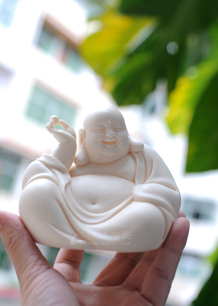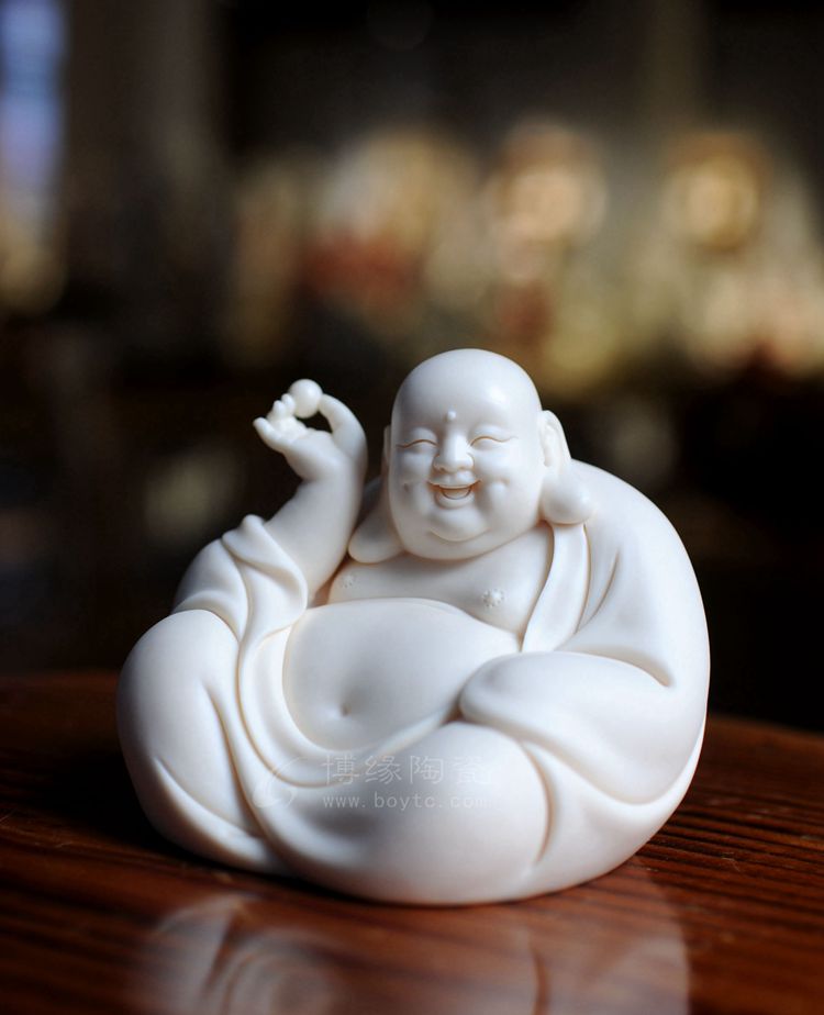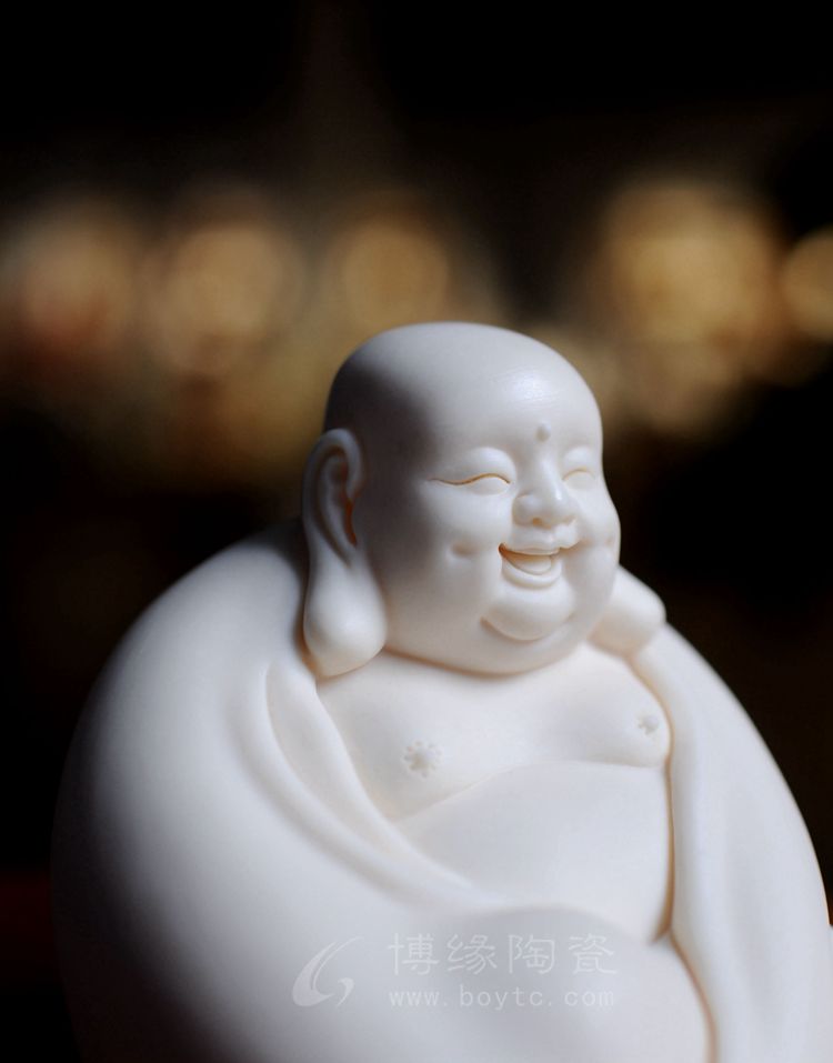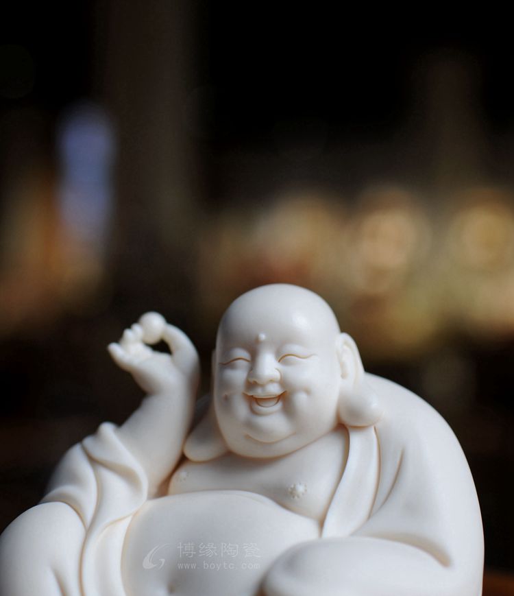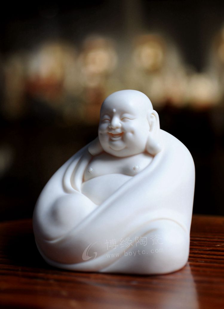 德化瓷之中,又以佛像為盛名。德化瓷所塑彌勒佛像有性格鮮明、造型優(yōu)美、神態(tài)逼真、衣紋流暢、風(fēng)格洗練等特點(diǎn)。
