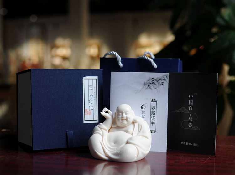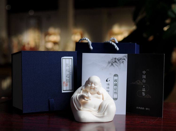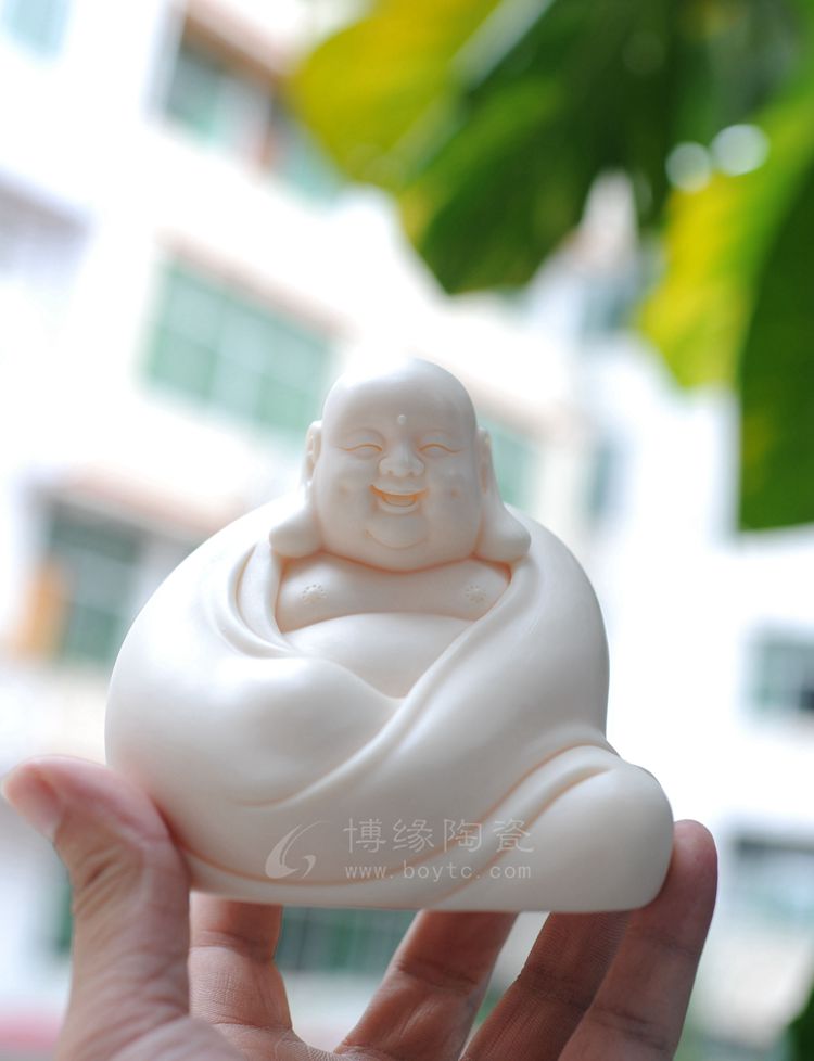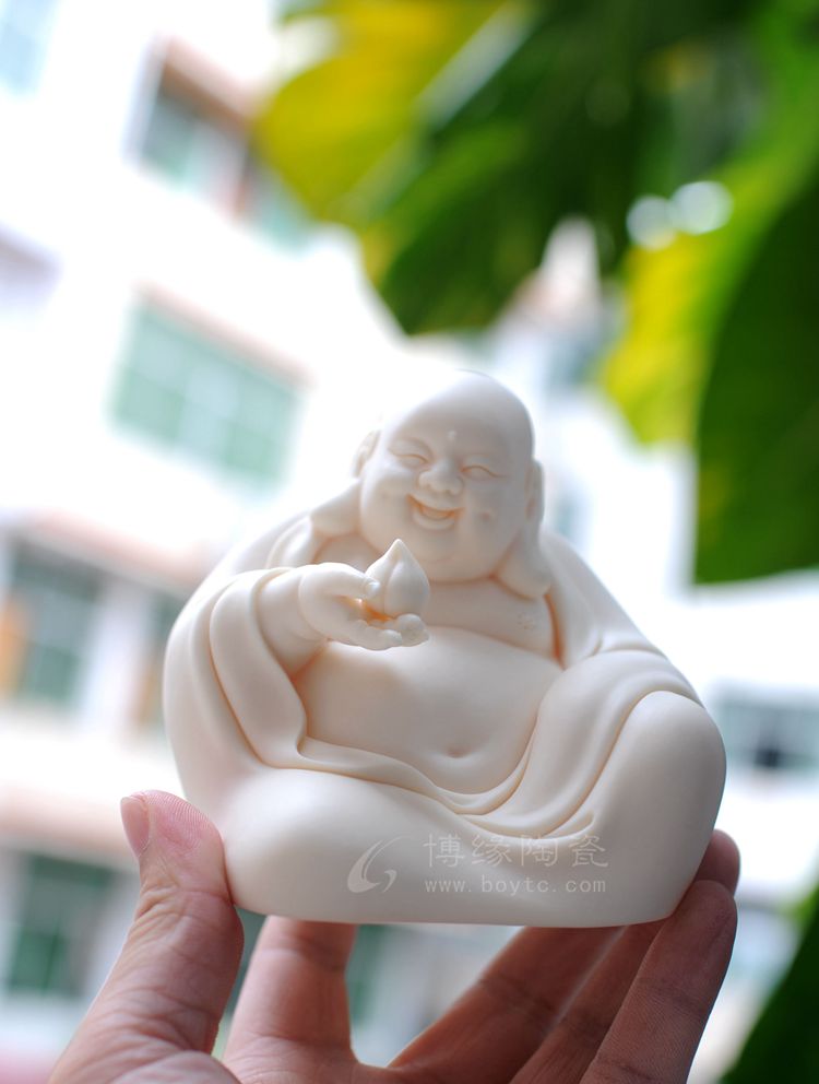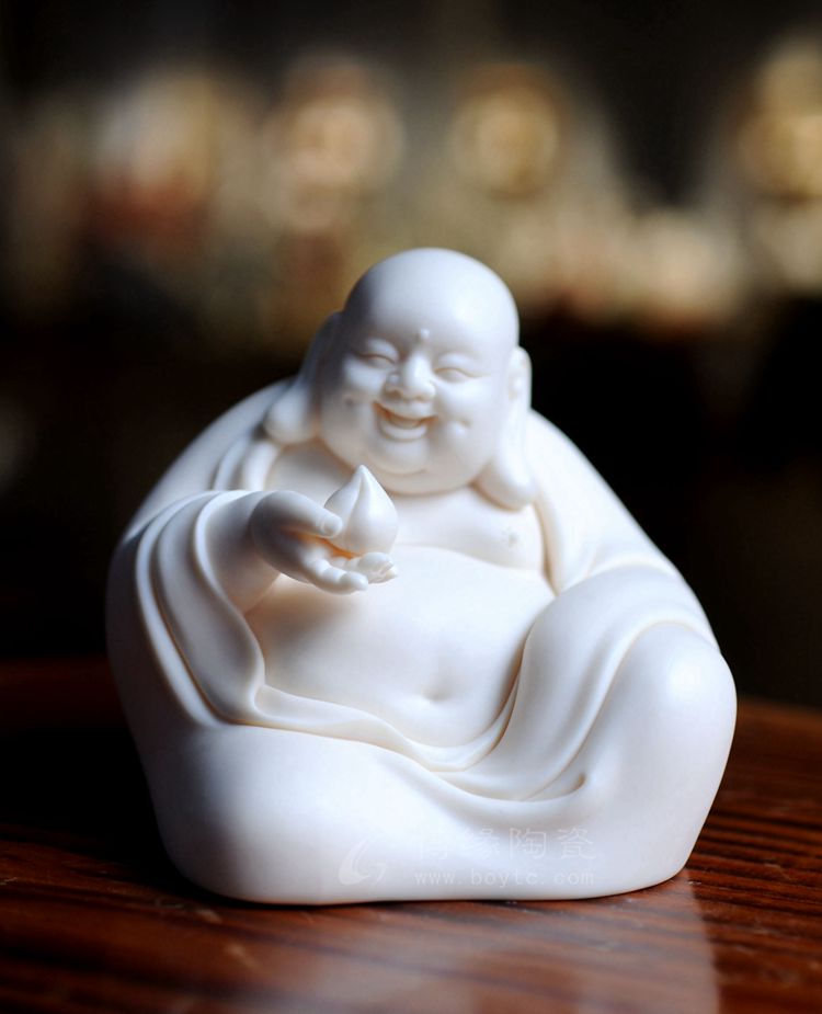 德化瓷之中,又以佛像為盛名。德化瓷所塑彌勒佛像有性格鮮明、造型優(yōu)美、神態(tài)逼真、衣紋流暢、風(fēng)格洗練等特點(diǎn)。