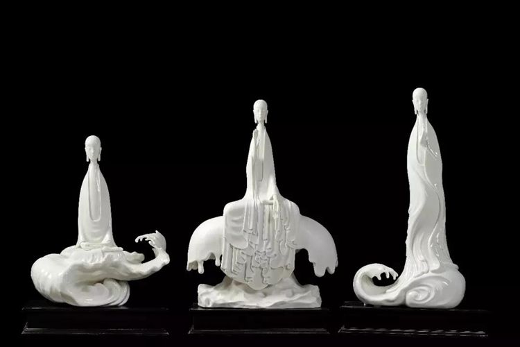 現(xiàn)代白瓷裝飾藝術十分精湛,手法豐富多樣,它在繼承發(fā)揚刻花、劃花和印花等傳統(tǒng)裝飾技藝的基礎上,大膽創(chuàng)新,大量使用了堆花、貼花和詩詞文字等裝飾,充分利用了白瓷質地純白、雜質少等特點,塑造出各種藝術品而不施任何彩料,成為德化瓷器的藝術特色。