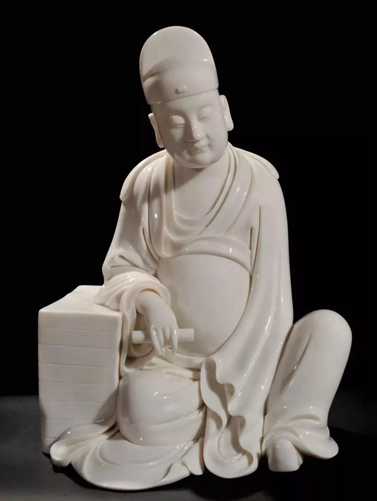 、谫|感凝脂似玉。德化白瓷的胎體致密,透明度高,釉色潔白,呈色溫潤如玉,凝脂似玉,達到了人們對瓷器追求玉器的質感的效果。
