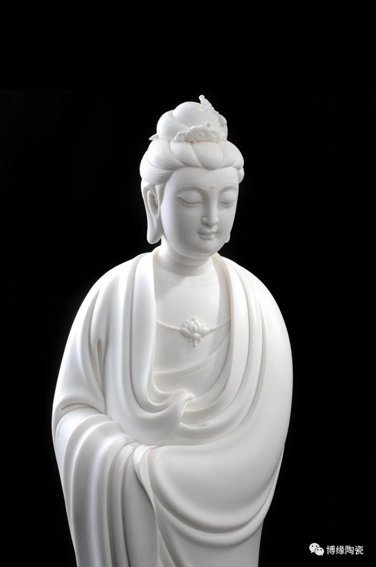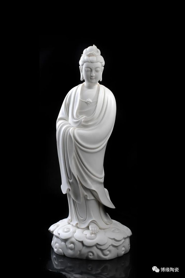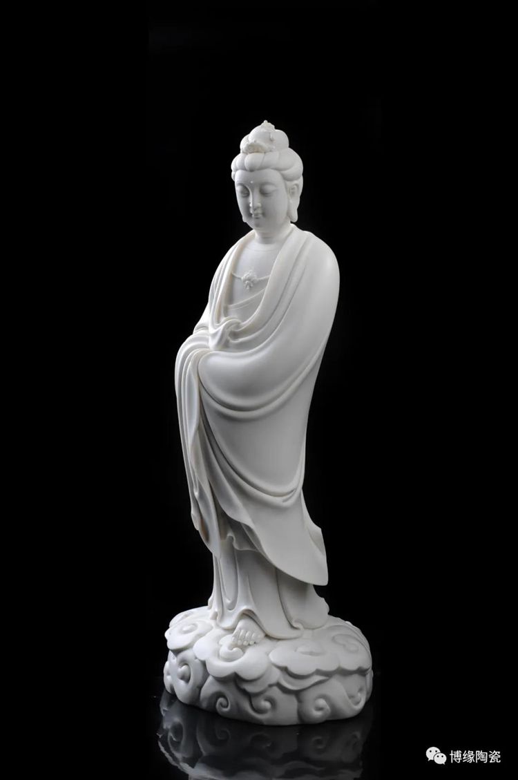 德化瓷器,以白瓷為最;白瓷之中,又以佛像為最。德化白瓷所塑佛像有性格鮮明、造型優(yōu)美、神態(tài)逼真、風(fēng)格洗練的特點(diǎn)。有一種單純的雕塑美和原材料的質(zhì)地美,最能體現(xiàn)佛教樸素、平和的思想。