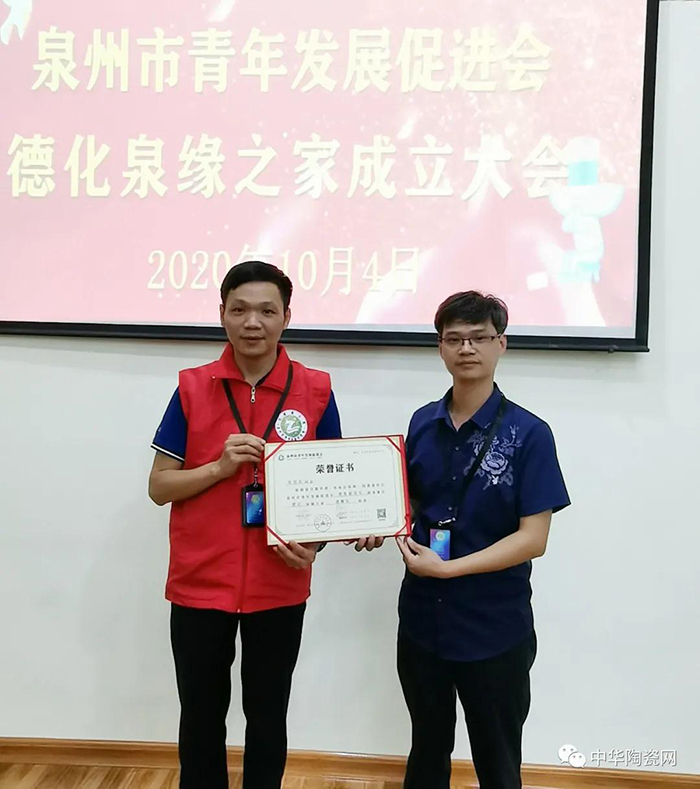 泉州市青年發(fā)展促進(jìn)會(huì)會(huì)長(zhǎng)潘海陽(yáng)為德化泉緣之家頒發(fā)證書(shū)